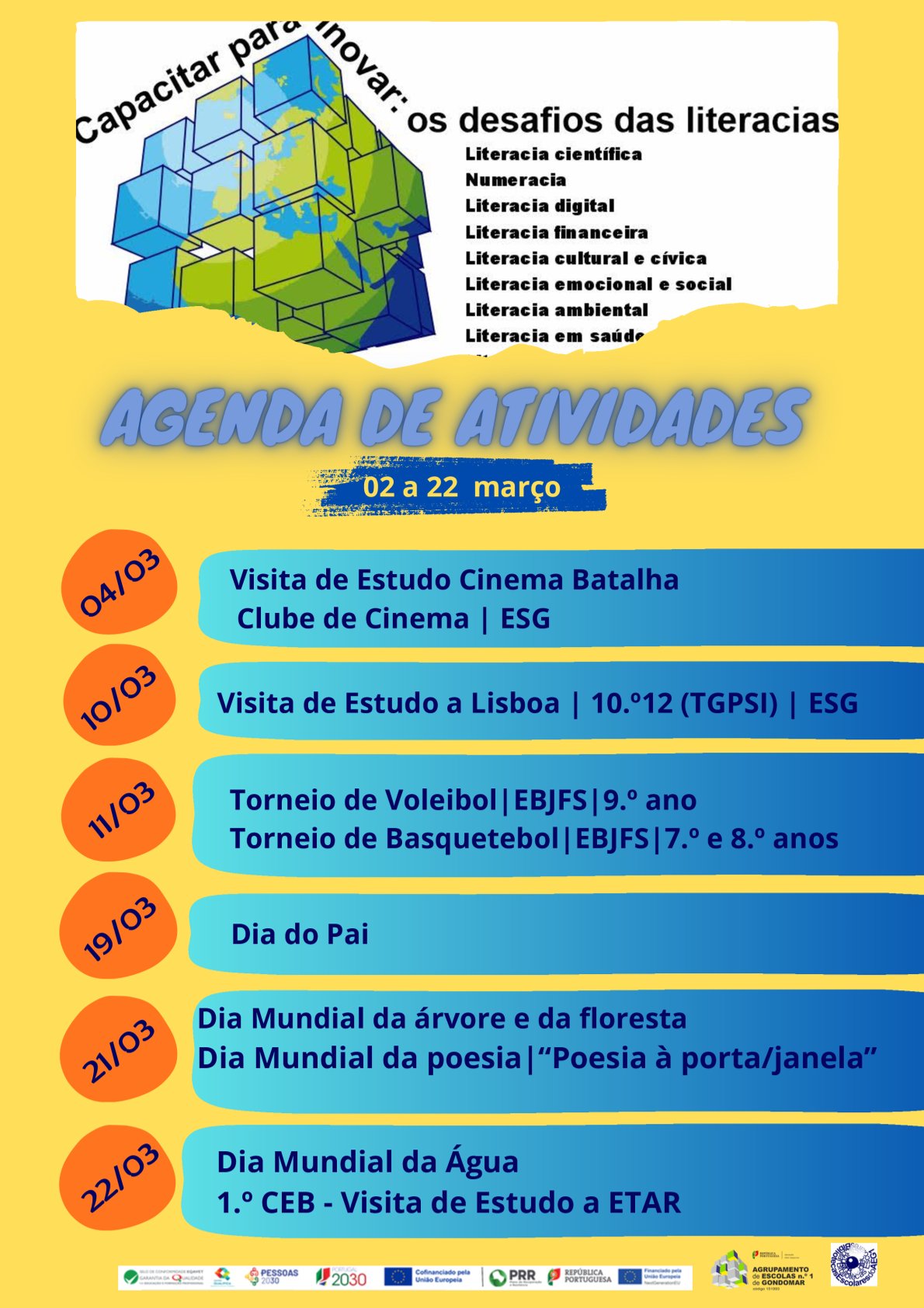 Agenda de atividades de 02 a 22 de março.