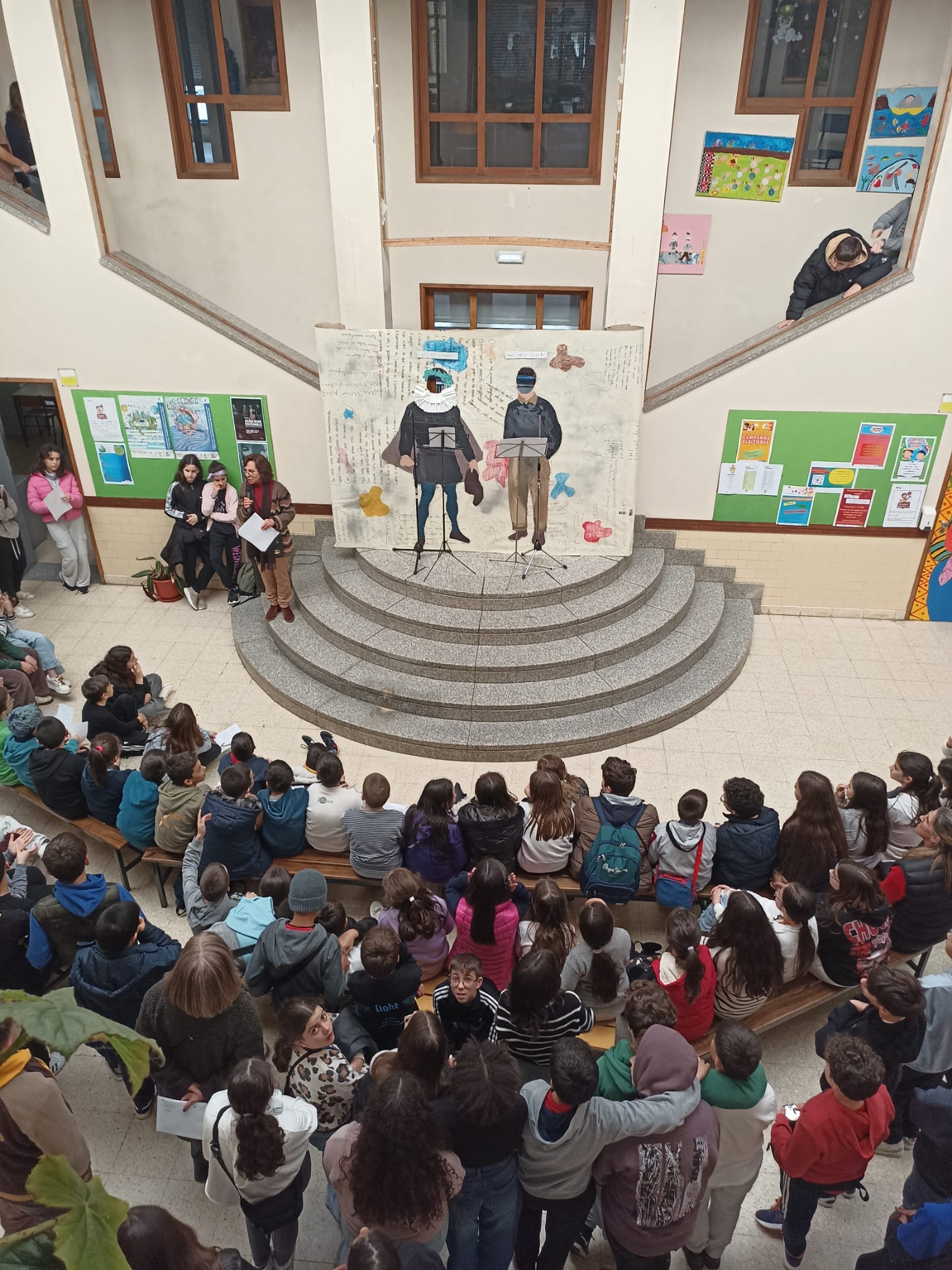 As bibliotecas escolares agradecem a todos os que colaboraram na realização da atividade, em especial aos alunos leitores e respetivos professores! Um especial obrigada, também, aos artistas residentes (António Portela e Pedro Farate), professora de EV (Carolina Mendes) e alunos do clube de fotografia responsáveis pelo registo fotográfico! Nota: As fotos são o registo da última apresentação que envolveu toda a comunidade escolar da EBJFS.