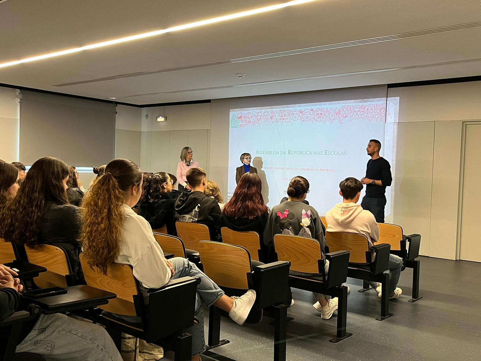 Decorreu, no dia 12 de dezembro, no Auditório da Escola Secundária de Gondomar, a sessão de debate com a Sr.ª Deputada Germana Rocha, no âmbito do projeto Parlamento dos Jovens - Ensino Secundário. A Sr.ª Deputada explicou aos participantes o funcionamento da Assembleia da República e o trabalho de um deputado. Ainda houve espaço para os alunos colocarem as suas dúvidas. O nosso agradecimento à deputada Germana Rocha pela sua disponibilidade e simpatia.