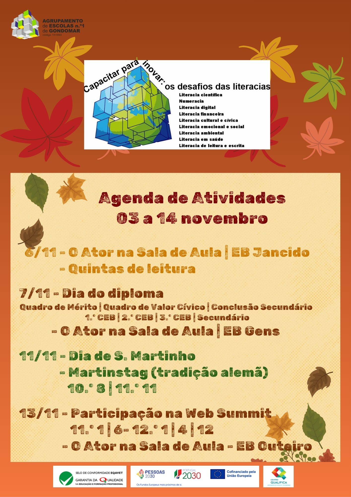 Agenda de atividades de 3 a 14 de novembro.