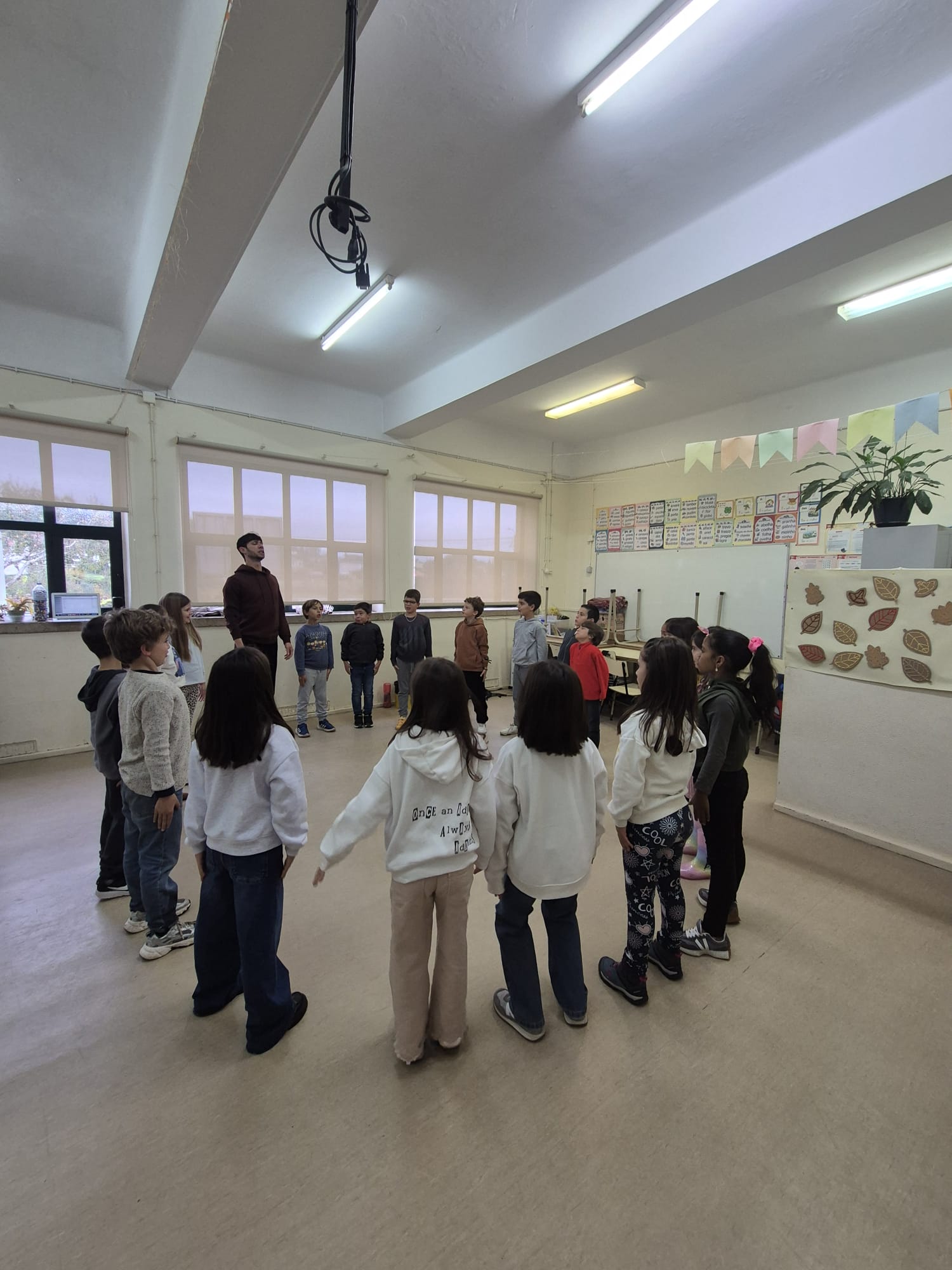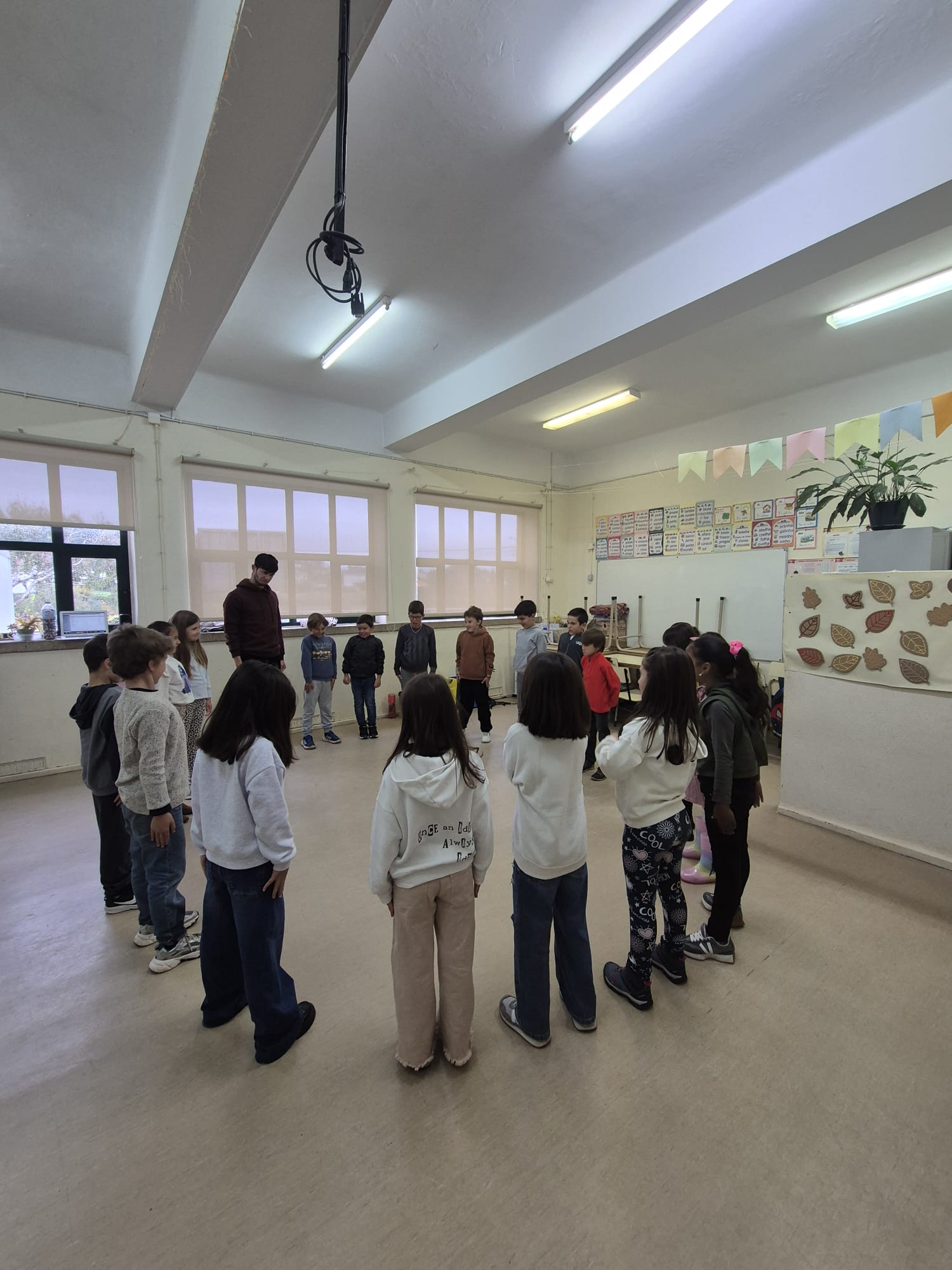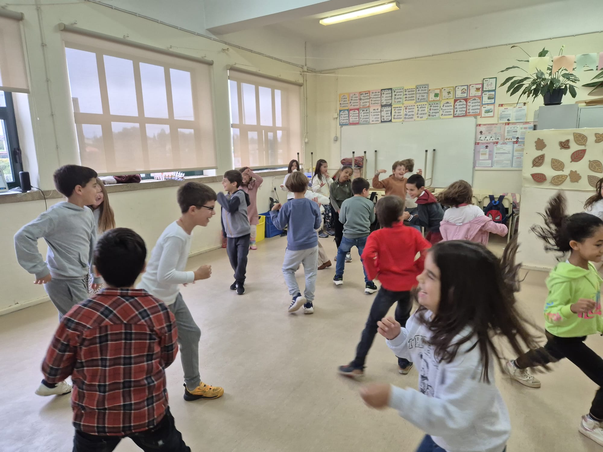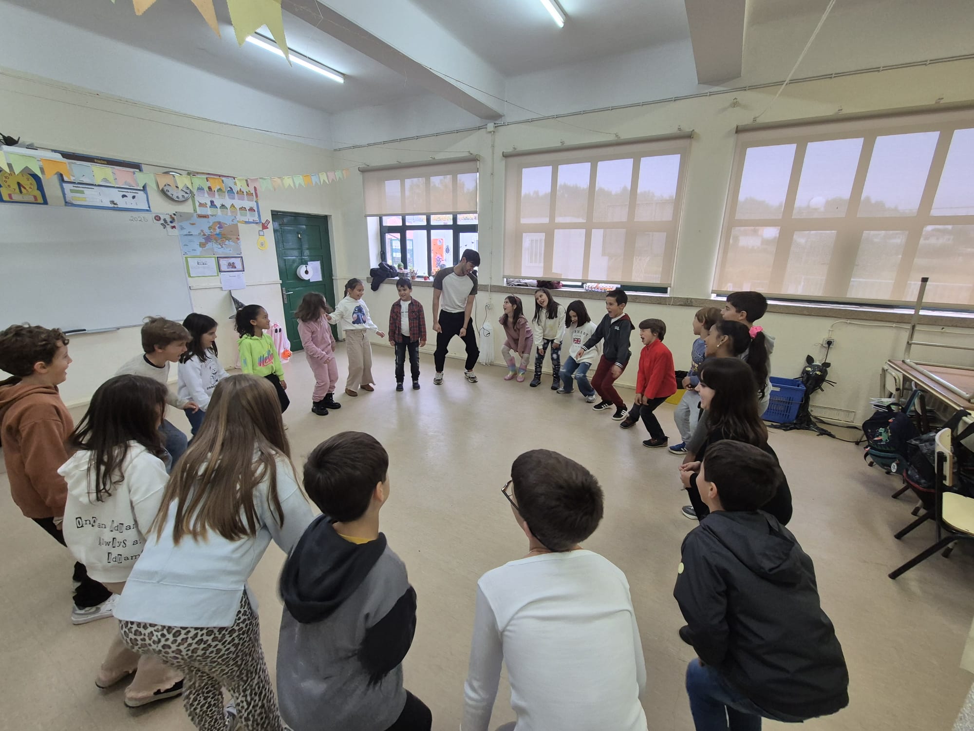 Entre risos e muita imaginação, os alunos do 1.º ao 4.º ano exploraram o corpo, a expressão e a criatividade através de divertidos exercícios teatrais.