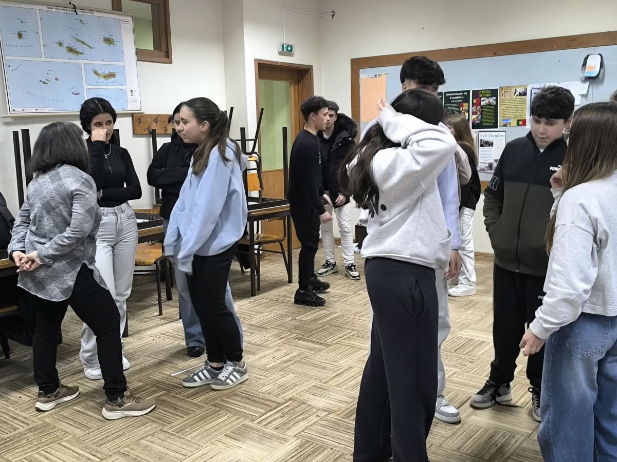 Nesta segunda-feira, as turmas do 9º ano da Escola Básica de Jovim e Foz do Sousa receberam a atividade "O Ator na Sala de Aula". As três turmas foram envolvidas em desafios práticos a partir do teatro para trabalharem a postura e a comunicação nas apresentações orais. A atividade integrou alunos e professores em jogos teatrais com muita expressividade e concentração.