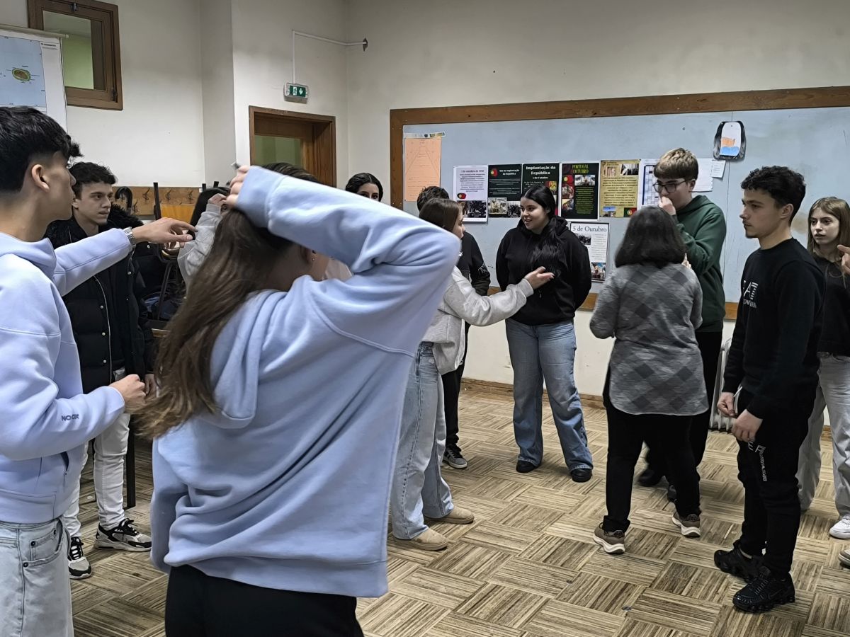 As turmas do 7º ano da Escola Secundária de Gondomar receberam a atividade O Ator na Sala de Aula com entusiasmo e energia. As quatro sessões envolveram professores e alunos em jogos teatrais para o trabalho da observação e da consciência do corpo no grupo e no espaço escolar. No AEG1 a arte está em movimento!